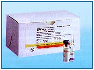 25 флаконов, содержащих 4 мг лиофилизированного действующего вещества, и 25 ампул растворителя по 2 мл.